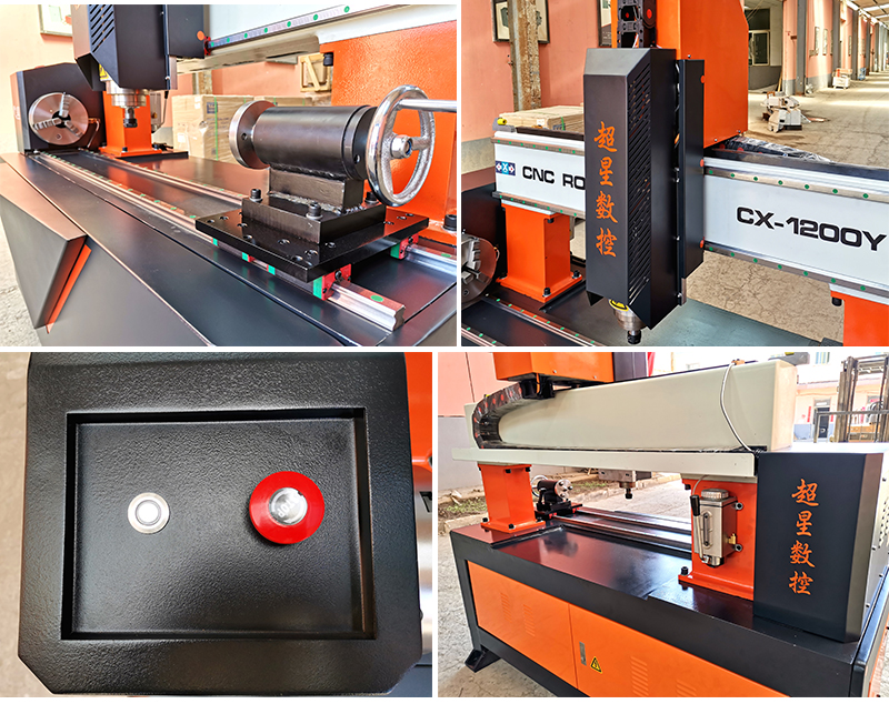 Der rotierende CNC-Fräser für Holz verfügt über einen DSP-Griff-Controller für eine einfache Bedienung. Stahlkonstruktionsbett, nahtloses Schweißen, starke Tragfähigkeit; Schneiden und Gravieren mit einem Durchmesser von 1200 mm, kann an spezielle Anforderungen angepasst werden. Extrem kurze Lieferzeit für CNC-Maschinen.