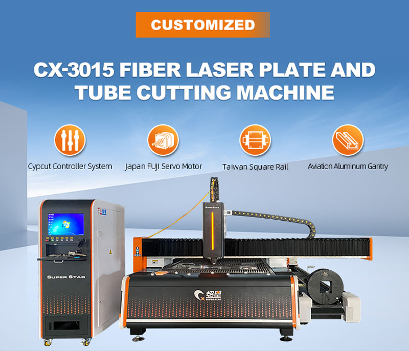 CX-3015HR Fiber Laser Plate and tube Cutting Machine can cut many kinds of metal sheet and metal tube, saving more than space and brings higher production efficiency. Mainly suitable for fast cutting of stainless steel, carbon steel, galvanized steel, electrolytic plate, brass plate, aluminum plate and other materials.