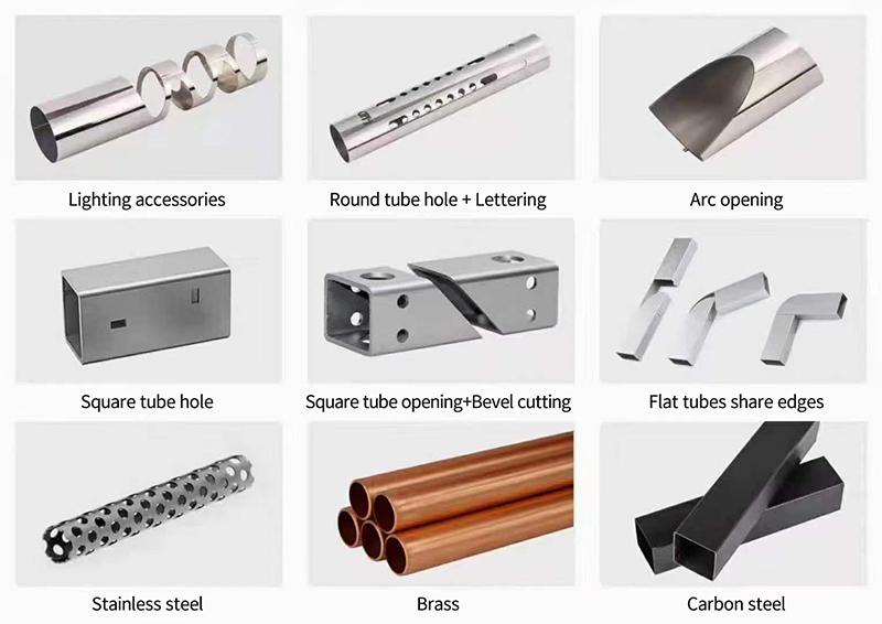 Die Rohrlaserschneidmaschine wird hauptsächlich zum Schneiden von Kohlenstoffstahl, Edelstahl, Kupfer, Aluminium und anderen Metallmaterialien verwendet. Es können runde, quadratische, rechteckige, ovale und andere Sonderformrohre verarbeitet werden. Es verfügt über doppelte pneumatische Spannfutter in Präzisionsqualität, lokalisiert automatisch die Mitte und ist mit einem hochpräzisen Servoverzögerungssystem ausgestattet. Schrägschnitt- und automatische Be- und Entladevorrichtungen sind optional, um Arbeitskosten zu sparen und die Schneideffizienz zu verbessern.